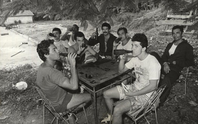 Con mi amigo Mariano y un grupo de pilotos, en el sanatorio de Topes de Collantes, en Trinidad, en 1988
