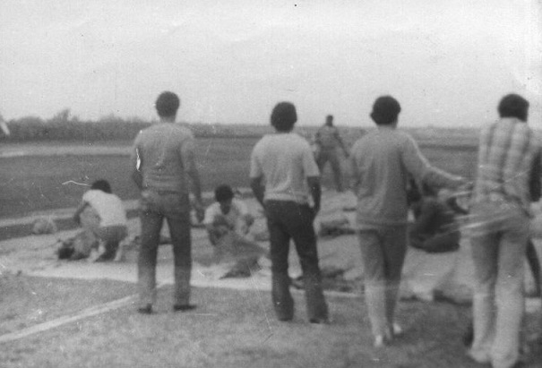 Momento cuando se recibieron los PZL-104 Wilgas, Tomas, Yo, Victor Leyva cuando se ensablaron en S.Nicolas de Bari 1983